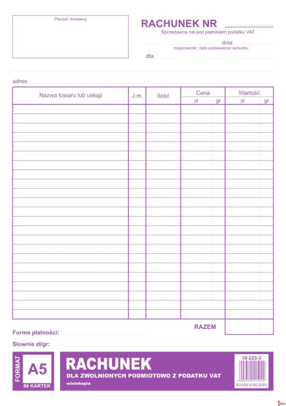 223-3 Rachunek A5 dla zw.z VAT (pion) wielokopia MICHALCZYK i PROKOP