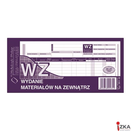 351-8 WZ wydanie materiałów na zewnątrz, 1/3 A4 80 kartek, MICHALCZYK&PROKOP
