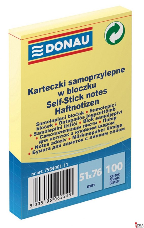 Nazwa B2B Bloczki samoprzylepne DONAU 51x76 Żółty 100k