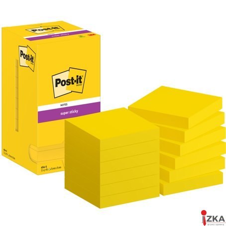 • Bloczek samoprzylepny SUPER STICKY 654-S, 76X76MM, 12x90kartek, żółty POST-IT, 3M