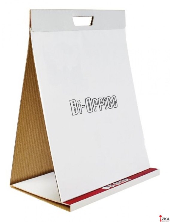Łatwy i szybki sposób prezentacji danych_stabilny, specjalnie zaprojektowane opakowanie po złożeniu pełni funkcję stelaża_gładki, samoprzylepny_klej bez zawartości rozpuszczalników, nie powoduje plam_kartki z bloku mogą być wielokrotnie przeklejane_możliwość odwracania lub odrywania arkuszy_rączka ułatwia przenoszenie_ilość kartek: 20_gramatura: 70gsm_rozmiar: 50x58,5cm_kolor biały