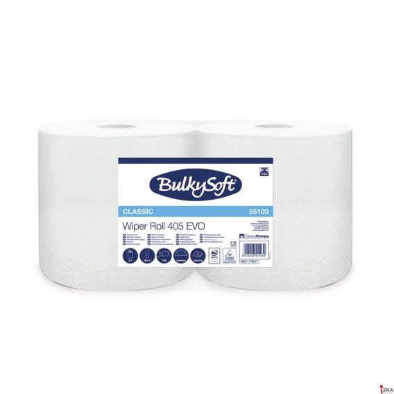 Czyściwo papierowe BulkySoft Classic, 2 warstwy, kolor biały, celuloza, długość 405m. 2 rolki/op.