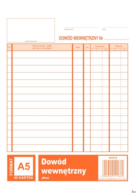 Dowód wewnetrzny A5, 40 kartek offset, 10-K12 DOTTS