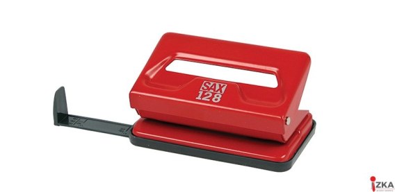 Metalowy mechanizm, plastikowa obudowa z wytrzymałego plastiku_zdolność dziurkowania: do 12 kartek_ogranicznik formatu: A4/A5/A6/888_2 dziurki_średnica dziurki: 5,5mm_odstęp pomiędzy dziurkami: 80mm_10 lat gwarancji_kolor czerwony