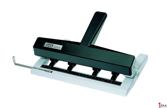 Metalowy, regulowany mechanizm, metalowa obudowa_posiada ogranicznik formatu: A5/Q1/Q2/A4/F/A3/A2_dziurkuje do 25 kartek_na 4 dziurki - możliwość zwiększenia/zmniejszenia_regulowana odległość pomiędzy dziurkami_średnica dziurki: 5,5mm_wyposażony w podziałkę centymetrową i calową do ustawiania stopek dziurkujących_dostępna dodatkowa stopka: SAX489_podstawa wyposażona w antypoślizgowe elementy_10 lat gwarancji