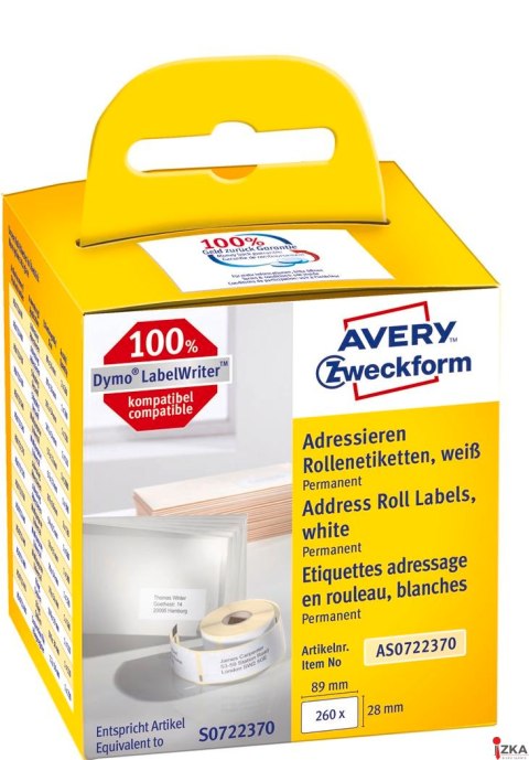 | Katalog_2021naz | Etykiety adresowe AS0722370 28x89 260 et. x 2 w rolce do termodruku, trwałe, białe, Avery Zweckform |