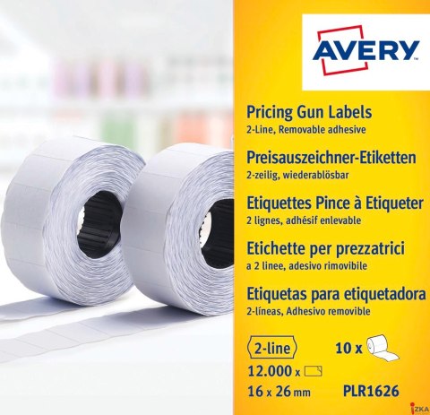 Etykiety cenowe do metkownic PLR1626 16x26 rolka do metkownicy dwurzędowej Avery Zweckform, usuwalne, 1200 etyk./rolka, 10 rolek