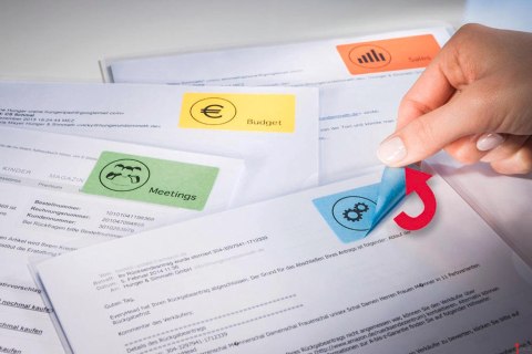 • Etykiety usuwalne, które pozwalają łatwo wymienić oznaczenia dokumentów. Po ich usunięciu nie pozostają ślady kleju.