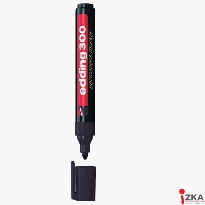 Najpopularniejsze markery niezmywalne Edding _- z końcówką okrągłą (300) oraz ściętą (330). Trwały, szybkoschnący, odporny na działanie światła, wody i ścieranie tusz, bez dodatku toluenu i ksylenu. Szerokość linii pisania: 1,5 - 3 mm (300), 1-5mm (330). Nadają się do ponownego napełniania. Idealne do pisania oraz wykonywania oznaczeń na niemal wszystkich rodzajach powierzchni, również na metalu, szkle oraz tworzywach sztucznych. _- Dostępne także w komplecie - 4 kolory._- jednostka sprzedazy 1 sztuka