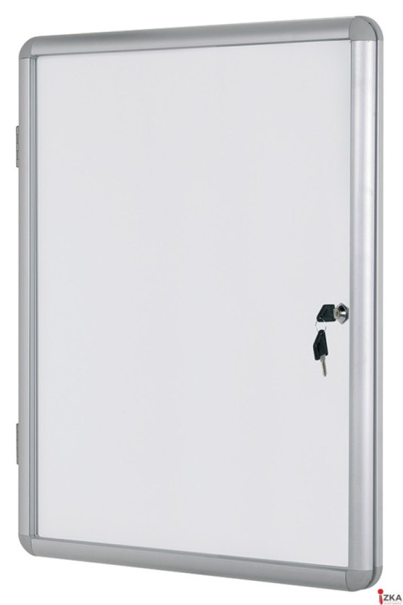 Gablota z powierzchnią suchościeralno-magnetyczną_do użytku wewnętrznego_mocowanie notatek za pomocą magnesów_zamykana na kluczyk_owalna, wąska rama wykonana z anodowanego aluminium_trwała witryna z mocnego tworzywa akrylowego, zapewnia doskonałą przejrzystość_w komplecie 2 klucze oraz zestaw mocujący do ściany_rozmiar tablicy: 90x120cm_głębokość wewnętrzna: 1,8cm_pojemność: 15 dokumentów w formacie A4_produkt pakowany jednostkowo w karton ochronny_kolor biały