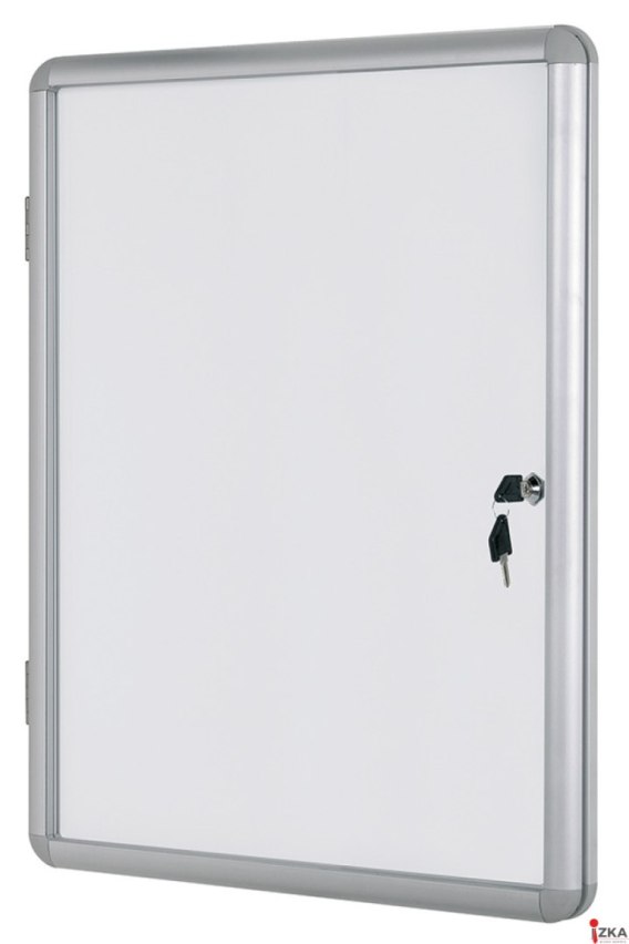 Gablota z powierzchnią suchościeralno-magnetyczną_do użytku wewnętrznego_mocowanie notatek za pomocą magnesów_zamykana na kluczyk_owalna, wąska rama wykonana z anodowanego aluminium_trwała witryna z mocnego tworzywa akrylowego, zapewnia doskonałą przejrzystość_w komplecie 2 klucze oraz zestaw mocujący do ściany_rozmiar tablicy: 67x93cm_głębokość wewnętrzna: 1,8cm_pojemność: 9 dokumentów w formacie A4_produkt pakowany jednostkowo w karton ochronny_kolor biały