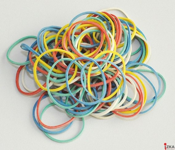 Gumki recepturki o zastosowaniu biurowo-domowym_wykonane z materiału o 60% zawartości kauczuku_średnica: mix rozmiarów_rozciągliwość w warunkach laboratoryjnych: 550%_waga opakowania: 25g_mix kolorów