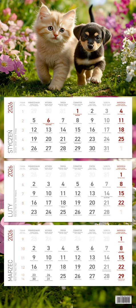Kalendarz trójdzielny ekonomiczny KS045B PRZYJACIELE 2026 WOKÓŁ NAS