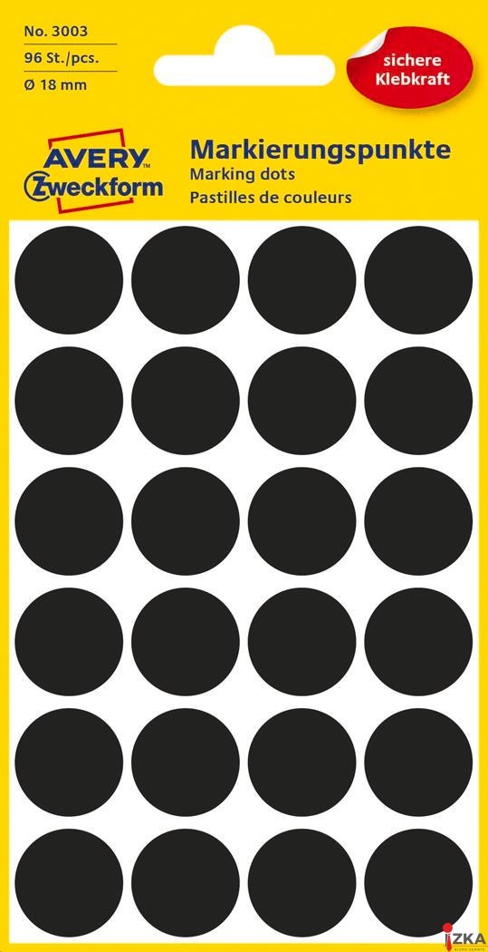 Nazwa B2B Kółka AVERY ZWECKFORM do zaznaczania kolorowe 96 etyk./op., _18 mm, czarne