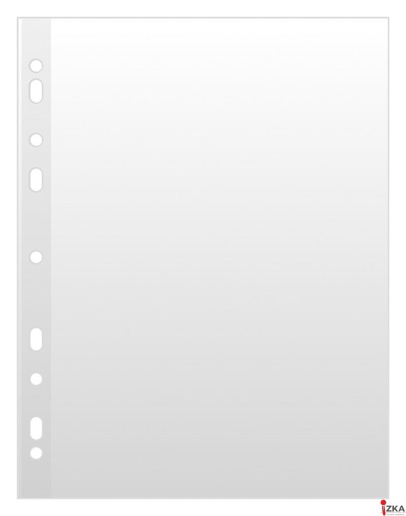 Wykonane z miękkiej, gładkiej folii polipropylenowej o grubości 50_m_krystaliczne, transparentne_otwarte na górze_antyelektrostatyczne_odpowiednie do dokumentów w formacie A5_ilość dziurek do wpięcia: 9_wzmocniony brzeg_rozmiar zewnętrzny: 171x215mm_100 sztuk w j.s._kolor transparentny