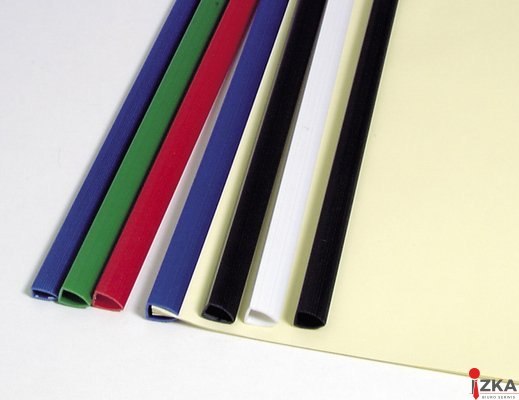 Listwy wsuwane Standard 15 mm__ proste listwy plastikowe z jedną zaokrągloną końcówką_ możliwość oprawienia listwą do 75 kartek formatu A4 bez użycia bindownicy_ dostępne kolory: biały, czerwony, niebieski, zielony, czarny, przezroczyste_ opakowanie: 50 sztuk w pudełku kartonowym