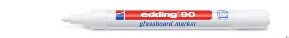 Marker edding 90 przeznaczony jest do pisania po tablicach szklanych - zarówno białych jak i kolorowych. Wysokiej jakości tusz wykazuje doskonałe właściwości kryjące, a jasne i żywe kolory wpływają na lepszy odbiór prezentowanych treści. Tusz jest łatwo usuwalny za pomocą suchej ściereczki. Marker wyposażony jest w okrągłą końcówkę o grubości linii pisania 2-3mm. Specjalnie zaprojektowany zawór reguluje dopływ tuszu do końcówki - wystarczy kilkukrotnie docisnąć końcówkę do kartki i gotowe. Przed użyciem należy energicznie wstrząsnąć. Kolor: biały.