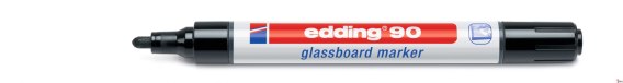 Marker edding 90 przeznaczony jest do pisania po tablicach szklanych - zarówno białych jak i kolorowych. Wysokiej jakości tusz wykazuje doskonałe właściwości kryjące, a jasne i żywe kolory wpływają na lepszy odbiór prezentowanych treści. Tusz jest łatwo usuwalny za pomocą suchej ściereczki. Marker wyposażony jest w okrągłą końcówkę o grubości linii pisania 2-3mm. Specjalnie zaprojektowany zawór reguluje dopływ tuszu do końcówki - wystarczy kilkukrotnie docisnąć końcówkę do kartki i gotowe. Przed użyciem należy energicznie wstrząsnąć. Kolor: czarny.