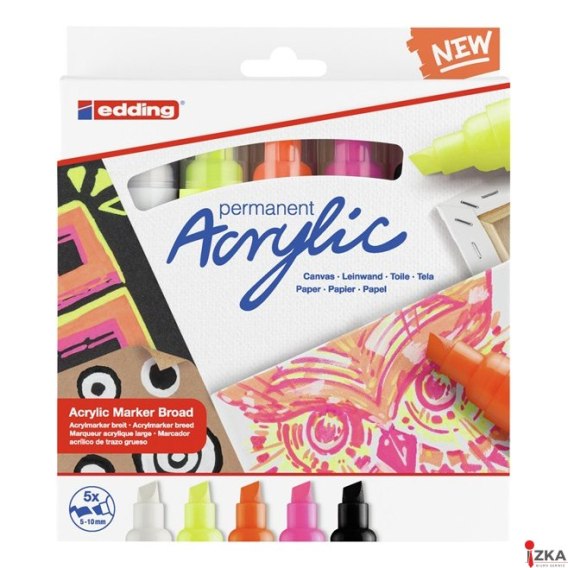 • Markery akrylowe 5-10 mm neonowe 5 szt. mix kolorów 5000/5S/NEON Edding