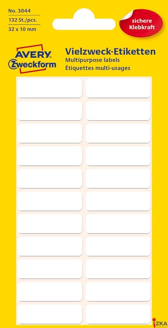 | Nazwa B2B | Białe miniEtykiety AVERY ZWECKFORM do opisywania ręcznego 132 etyk./op., 32 x 10 mm, białe |