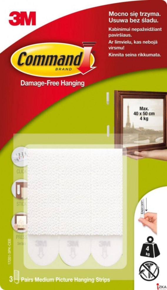 Zapomnij o dziurach w ścianach, pęknięciach w gipsie lub resztkach kleju na ścianie, zastąp gwoździe i śrubokręty Commandem__haki i rzepy Command_ nie niszczą powierzchni oraz samych obrazów i ramek_wystarczy jeden klik, a już wiesz, że rzepy Command_ są poprawnie umocowane na ścianie_usunięcie rzepów i haków Command_ jest równie proste jak ich aplikacja, szczególnie kiedy chcesz dowolnie zmienić położenie obrazu lub go zdjąć_kolor biały