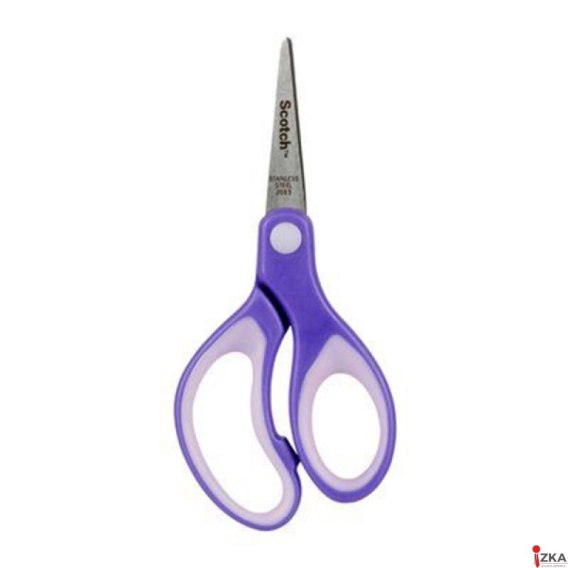 Szkolne nożyczki dla dziecka od marki Scotch_ z ergonomicznym uchwytem dla małych rączek i spiczastym ostrzem dla precyzyjnego wycinania_idealne do wycinanek z papieru, bibuły, zdjęć i czasopism_spiczaste ostrze pozwala na precyzyjne wycinanie elementów_ergonomiczny uchwyt dla osób prawo- i leworęcznych_kolor: zielony i fioletowy