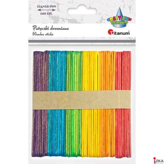 • Patyczki drewniane mix kolorów (100) 11,4cm 361574 TITANUM 50 kolorowych + 50 naturalnych