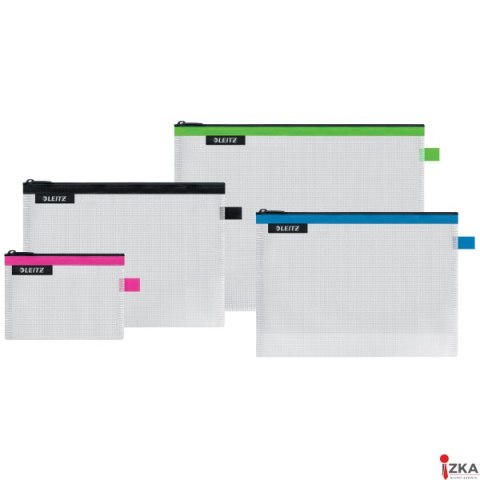 Element kolekcji Leitz WOW oferującej szeroki wybór stylowych produktów biurowych, zaprojektowanych w przykuwających wzrok stylowych kolorach, przeznaczonych dla osób pracujących w biurach lub często przemieszczających się_Praktyczny sposób porządkowania przedmiotów codziennego użytku w torebce, torbie na laptopa, plecaku szkolnym, bagażu podróżnym lub w samochodzie, jak również ochrony dokumentów przed zachlapaniem podczas rejsu łódką_Duża saszetka do porządkowania większych przedmiotów: 30 x 23 cm_Przezroczysty materiał pozwala na podgląd zawartości_Wykonana z nietoksycznego, wytrzymałego, wodoodpornego i nadającego się do prania materiału EVA_Mocny, lekko przesuwający się suwak_Różne wymiary i kolory ułatwiają porządkowanie rzeczy
