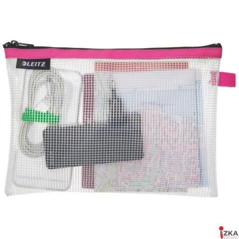 Element kolekcji Leitz WOW oferującej szeroki wybór stylowych produktów biurowych, zaprojektowanych w przykuwających wzrok stylowych kolorach, przeznaczonych dla osób pracujących w biurach lub często przemieszczających się_Praktyczny sposób porządkowania przedmiotów codziennego użytku w torebce, torbie na laptopa, plecaku szkolnym, bagażu podróżnym lub w samochodzie, jak również ochrony zawartości przed zachlapaniem podczas rejsu łódką_Średniej wielkości saszetka do porządkowania drobnych przedmiotów w bagażu podręcznym: 24 x 17 cm_Przezroczysty materiał pozwala na podgląd zawartości_Wykonana z nietoksycznego, wytrzymałego, wodoodpornego i nadającego się do prania materiału EVA_Mocny, lekko przesuwający się suwak_Różne wymiary i kolory ułatwiają porządkowanie rzeczy