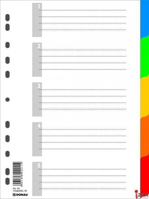 | Nazwa B2B | Przekładka Donau PP A4 KOLOR 5 KARTEK |