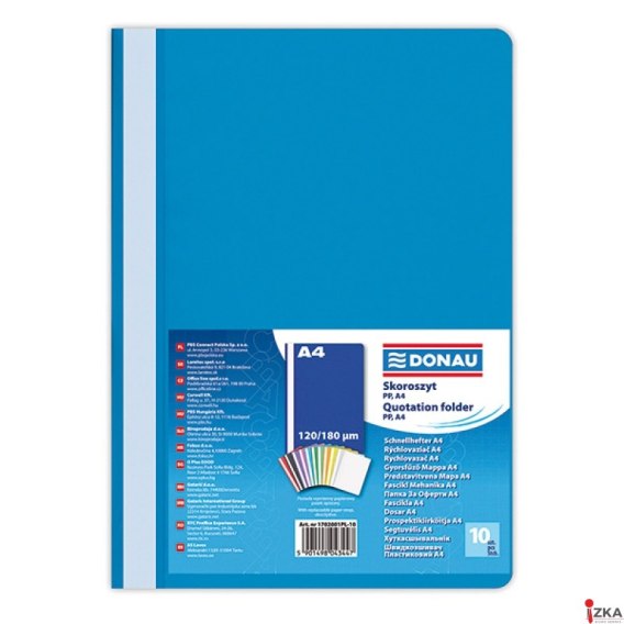 Wykonany z ekologicznego polipropylenu_posiada Zielony Punkt (Der Gr_ne Punkt) - udział w systemie recyklingu i odzysku odpadów wynikający z przepisów prawa polskiego i UE_strona przednia transparentna - grubość PP: 120_m_strona tylna kolorowa - grubość: 180_m_mieści ok. 200 kartek (2cm)_niewpinany_wymienny, dwustronnie zapisywalny pasek brzegowy_format: A4_rozmiar: 222x307mm_kolor niebieski