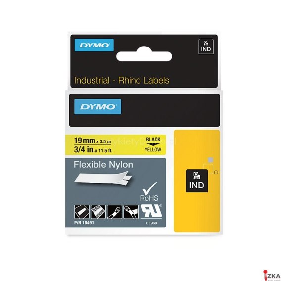 • Taśma nylonowa RHINO elastyczna - żółta 19 mm (do opisu kabli i przewodów) 18491 DYMO