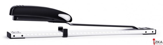 Zszywacz z przedłużonym ramieniem zszywającym_metalowy mechanizm, metalowo-plastikowa obudowa_zdolność zszywania: do 20 kartek_głębokość wsunięcia kartki: 300mm_zszywki: 24/6 lub 26/6_pojemność: 150 lub 200 zszywek_umożliwia zszywanie na zewnątrz_gwarancja 10 lat_kolor czarny