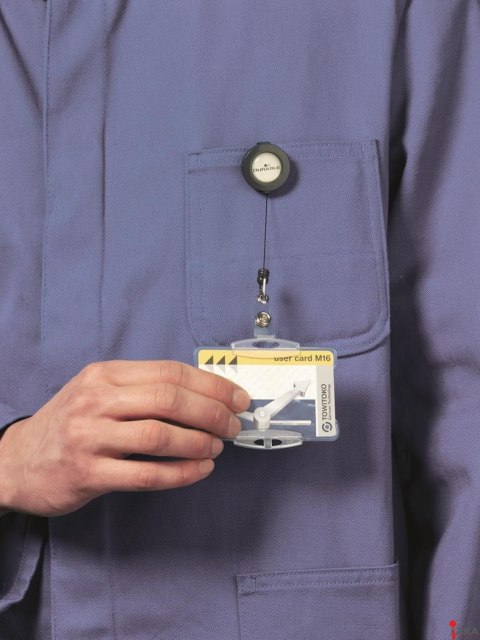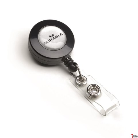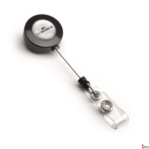 Mechanizm ściągający z uchwytem do identyfikatorów__Przeznaczony szczególnie do wszystkich identyfikatorów DURABLE z otworem na klips. Długość: ok. 80 cm Dzięki metalowemu klipsowi na znajdującemu się na tylnej ściance jest łatwy do zaczepienia.