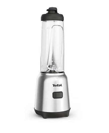 Blender personalny TEFAL MIX & MOVE BL15FD30 o mocy 300 W gwarantuje łatwe i płynne miksowanie w mgnieniu oka, dbając o przyjemność świeżego koktajlu bez czekania. Dwie wygodne butelki Tritan o pojemności 600 ml, by cieszyć się ulubionymi napojami w podróży. Mobilność idzie w parze z wydajnością i pomysłowymi funkcjami: opływowa, kompaktowa konstrukcja dla wygodnego przechowywania, łatwe do czyszczenia, wyjmowane ostrza, moc 300W dla gładkich i kremowych rezultatów w mgnieniu oka oraz ergonomiczna obsługa jednym przyciskiem dla komfortowego blendowania. Blender TEFAL BL15FD30 dzięki kompaktowym rozmiarom oszczędza miejsce na blacie, bez trudu zmieści się w kuchennych szafkach, spiżarniach i szufladach.
